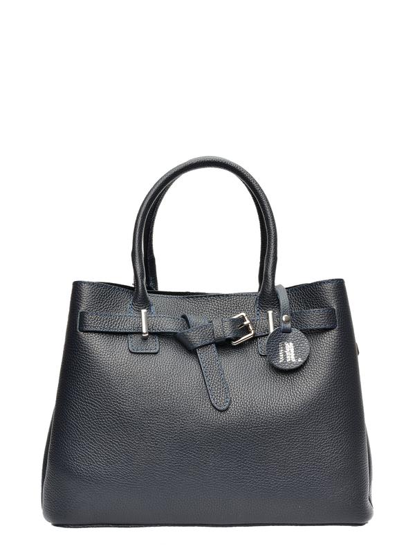 Top zip closure with decorative front belt detail